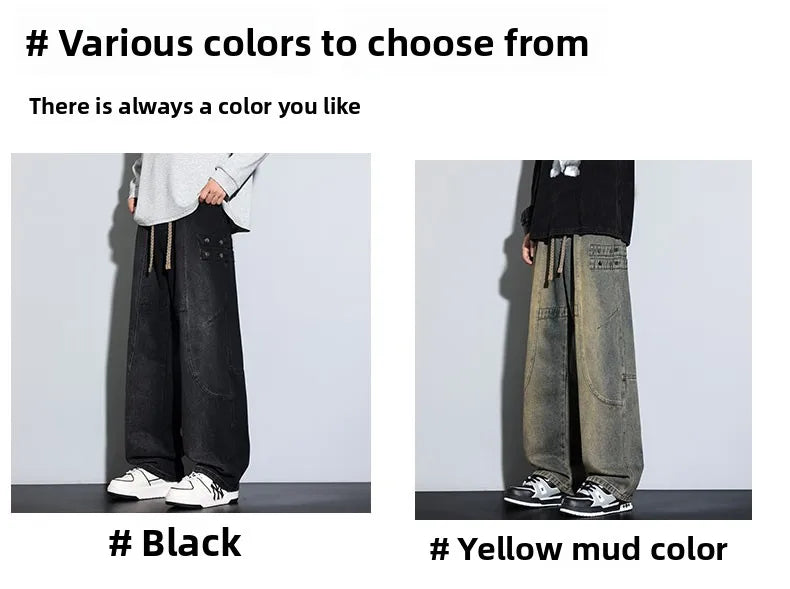 Jeans for Men Men's Casual Trousers Versatile Spring Autumn Large-sized Long Pants Fashionable Loose Straight-leg Wide-leg Pants